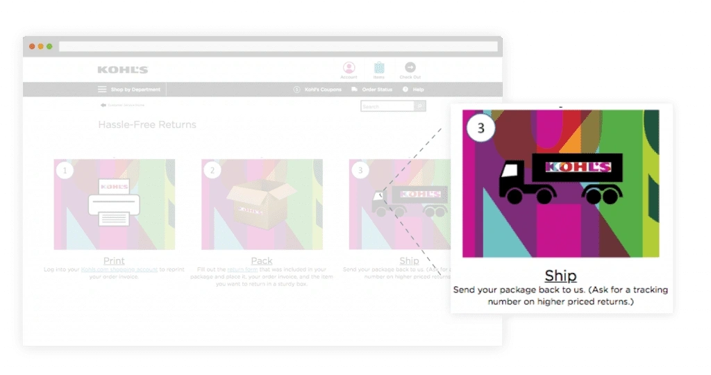 Take a look at Kohl’s return policy for online orders. The page has a concise explanation with links to more information if the visitor wants to dive deeper.